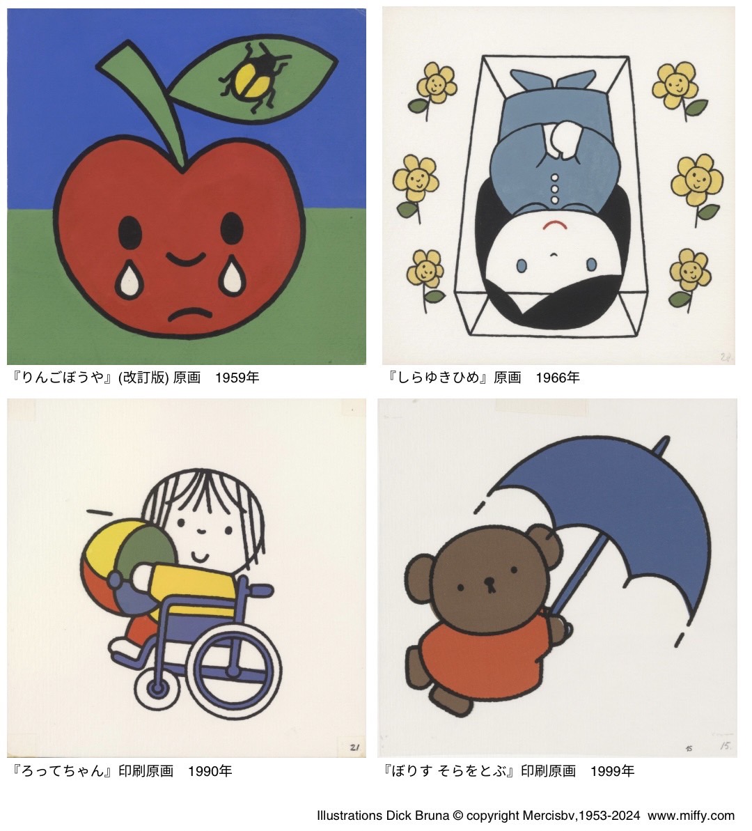 世界中で人気の絵本の主人公「ミッフィー(うさこちゃん)」の生みの親として知られるディック・ブルーナさんが、初めての絵本『de appel(りんごぼうや)』(初版)を出版してから2023年に70周年を迎えたことを記念して、絵本展を開催。