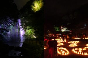 箕面の夏の風物詩。恒例の箕面大滝ライトアップをはじめ、阪急箕面駅から箕面大滝までの滝道を、「夏の涼」をイメージしたカラーでライトアップ。また、7/29(土)には、5000本以上のろうそくが滝道の夜を幻想的に照らす「キャンドルロード」が夏の夜を彩る。夕涼みをかねて、滝道そぞろ歩きを楽しもう。
